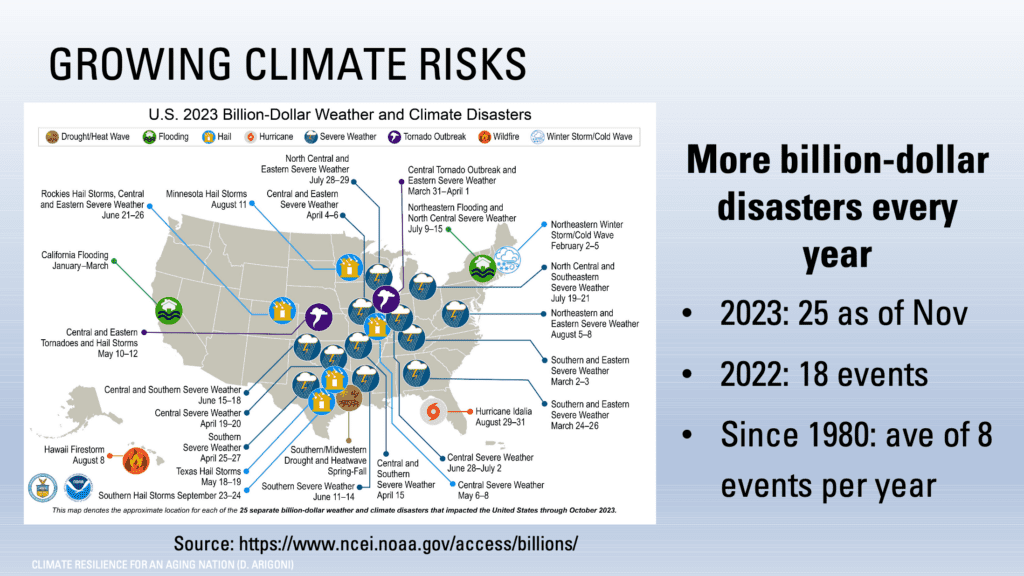 Danielle concluded with a call to action, emphasizing the urgent need to reverse the 20-year trend of neglecting the intersection between climate risks and an aging population. It’s not merely about understanding the issues; it’s about actively working towards solutions. The author, motivated by this urgency, has committed to contributing to the cause through her book, Climate Resilience for an Aging Nation.